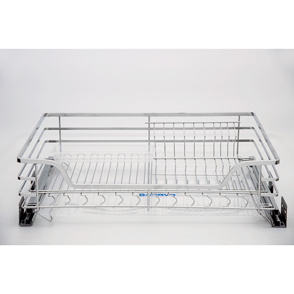 Kệ bát đĩa có kết cấu thông minh với hai ray trượt giảm chấn dễ dàng kéo đẩy và hút vào khi sử dụng. Nhờ cấu tạo chắc chắn, kệ bát đĩa có thể chịu được trọng tải lớn lên tới 35kg và phù hợp với mọi loại bát đĩa.